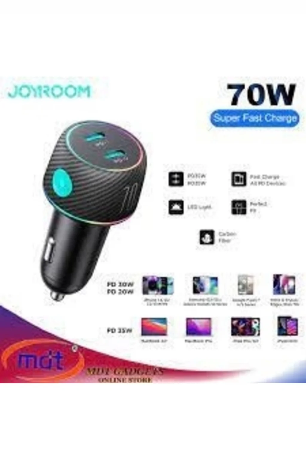 1. ; Ürün, ışık düğmeli 70 W çok renkli bir araç şarj cihazıdır. ; 2. ; Çift PD çıkış bağlantı noktasına sahiptir ve aynı anda 2 cihaz için hızlı şarj sağlar. ; 3. ; Desteklenen PD3.0, QC3.0, PPS, Samsung AFC hızlı şarj protokolleri ve Huawei SCP süper hızlı şarj protokolleri. ; 4. ; 7 açık renk arasında geçiş yapmak için bir ışık düğmesi ile tasarlanmıştır. ; Gece parazitini önlemek için üst ve alt LED halkaları kapatılabilir. ; 5. ; Akıllı tanıma çipi ve uygun akım dağıtımı ile ürün, telefonunuza ve arabanıza zarar vermez. ; Yangın geciktirici PC malzemesi, daha az ısı ile daha güvenli bir şarj sağlar. ; 6. ; Özellikler: Giriş: DC 12-24V PD-1 Çıkış: 5V=3A,9V=3A,12V=2,92A,15V=2,33A,20V=1,75A PPS: 3,3-11V=3A (Maks.) PD-2 Çıkış: 5V=3A,9V=3A,12V=2.92A,15V=2.33A,20V=1.75A PPS: 3.3-11V=3A (Maks) Toplam Çıkış: 70W (Maks) Malzeme: PC+ABS yanmaz malzeme Boyut: 69,6x32,5x32,5 mm Net Ağırlık: 24,8 g;