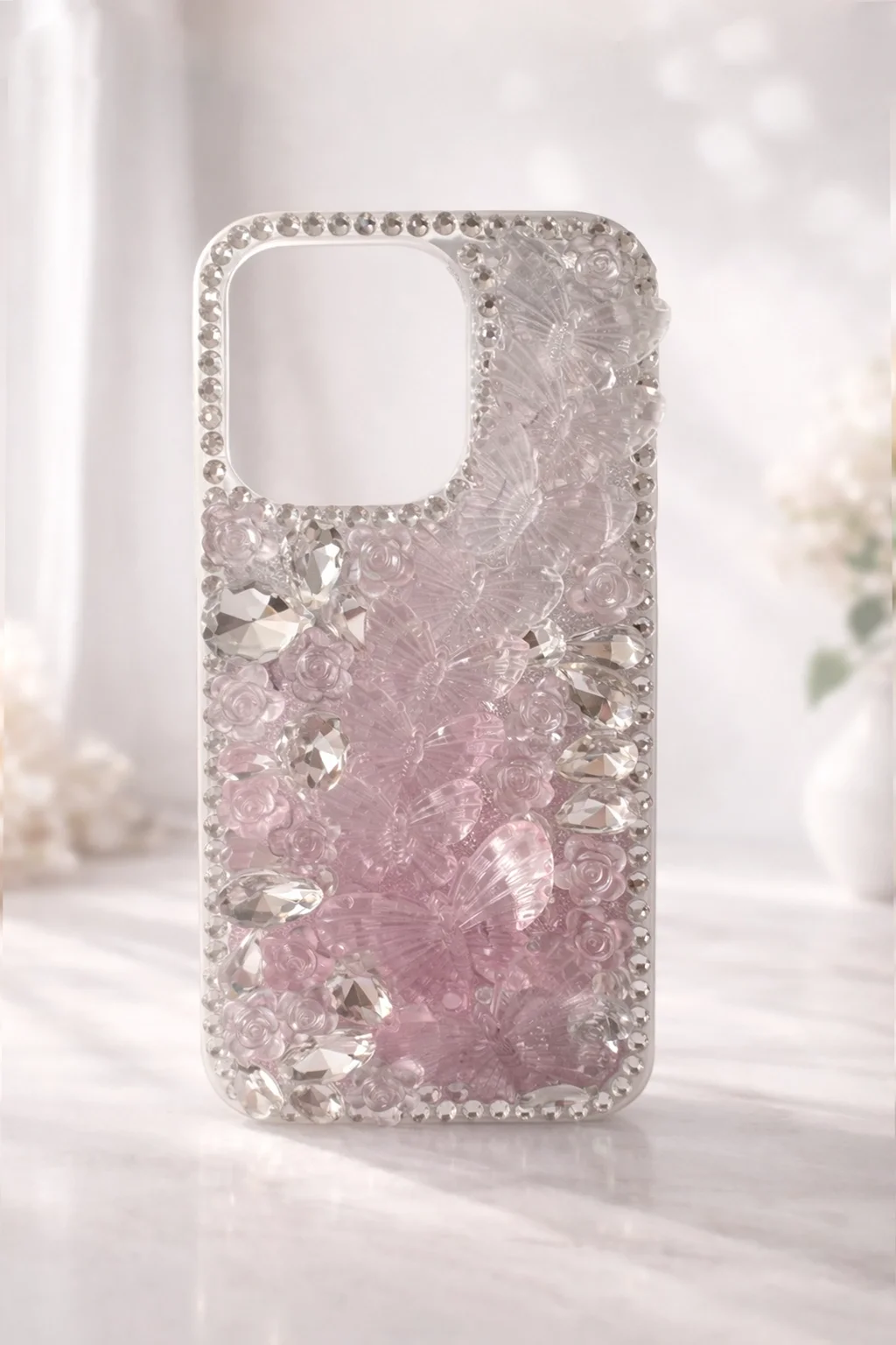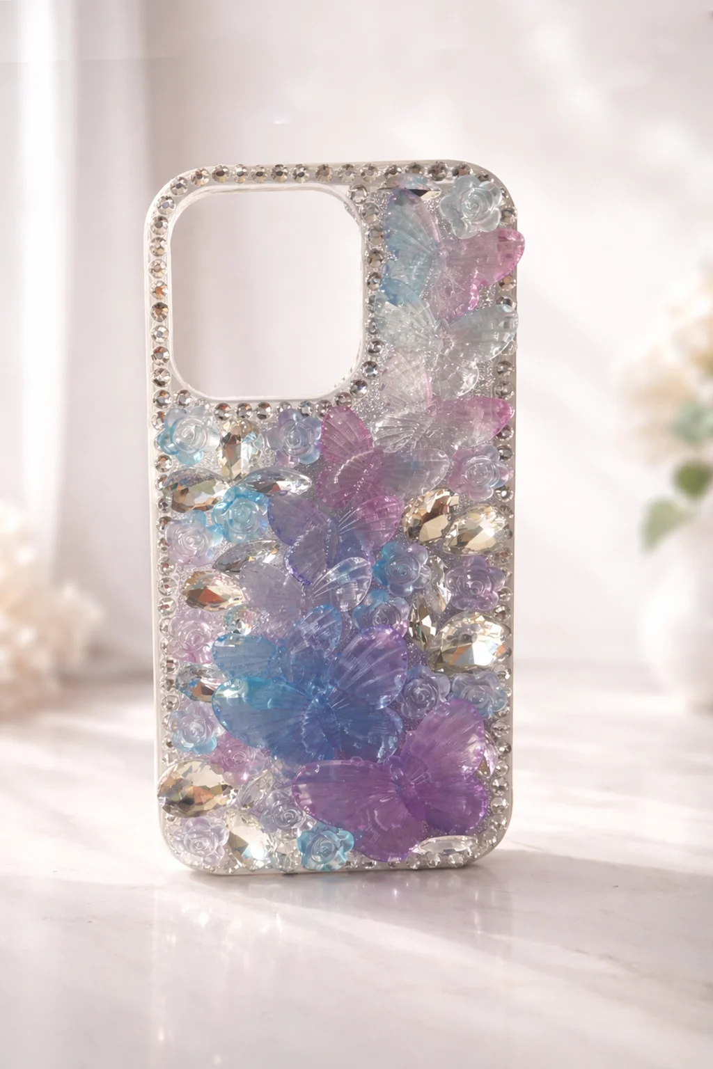 iPhone 12'nize hem koruma hem de şıklık katmak için Miscase Kelebek Taşlı Zarif Blur Case tercih edebilirsiniz!