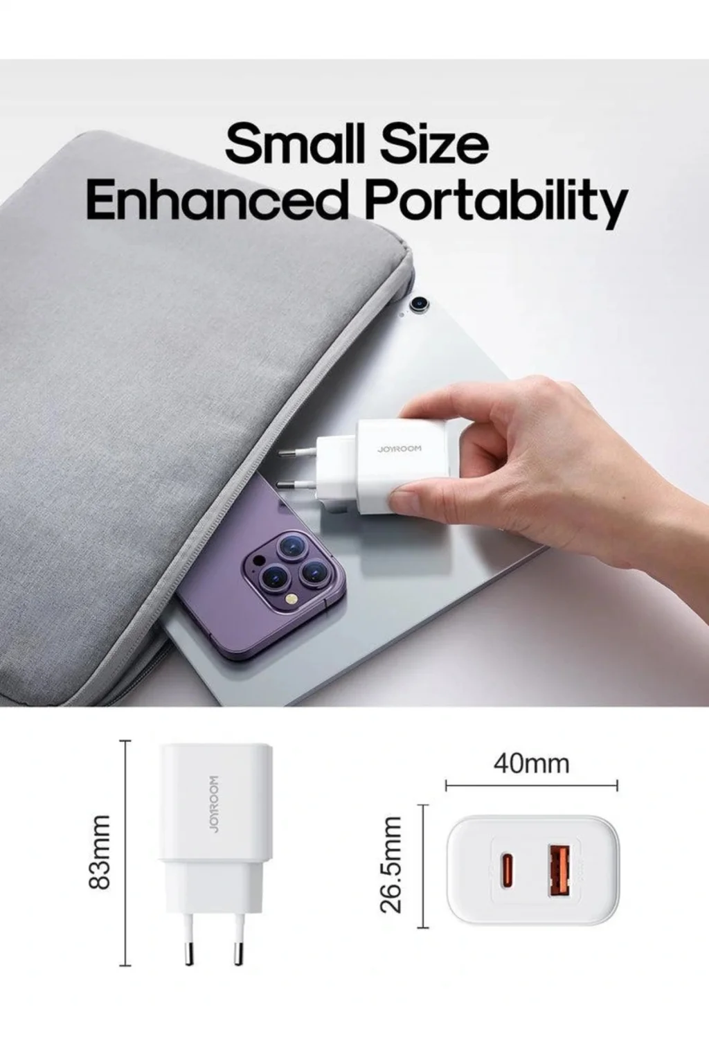 Özellikler Model: JR-TCF05 Adı: Flash Serisi 20W A+C Çift Port Şarj Cihazı Giriş: 100-240V~ 50/60Hz, 0.8A (Maksimum) PD Çıkışı: 5V=3A, 9V=2.22A, 12V=1.67A QC3.0 Çıkışı: 5V=3A, 9V=2A, 12V=1.5A Toplam Çıkış: 5V=3A (Maksimum) Malzeme: PC yangına dayanıklı malzeme. Çeşitli markaların telefonlarına ve tabletlerine PD 20W yüksek güçlü hızlı şarj sağlar. Aynı anda 2 cihazı şarj edebilir.PD3.0, QC3.0, Samsung AFC ve Huawei FCP hızlı şarj protokollerini destekler. Daha güvenli şarj için yüksek derecede yangına dayanıklı PC malzeme kullanılır. Akıllı çip, CE/FCC/RoHS sertifikalarını geçer, güvenli şarj sağlar.