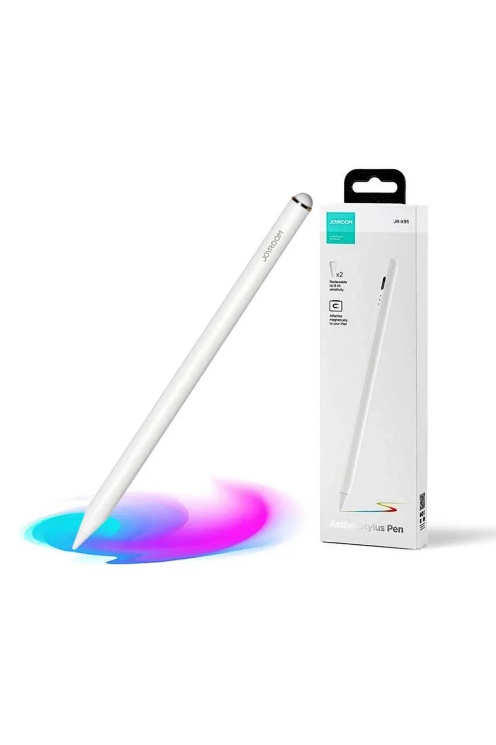 Joyroom JR-X9S Aktif Pasif Kapasitif Stylus Pen'i. Joyroom'un kapasitif kalemi, çizim yapmak ve not almak için tasarlanmış hassas bir cihazdır. Herhangi bir kapasitif dokunmatik ekranda kullanılabilir. Kalem, açıldıktan hemen sonra çalışmaya hazırdır. Herhangi bir şey yüklemeniz veya yapılandırmanız gerekmez. Bataryanın tamamen şarj olması 60 ila 90 dakika sürer ve tam dolu batarya ile çalışma süresi 8-10 saattir.