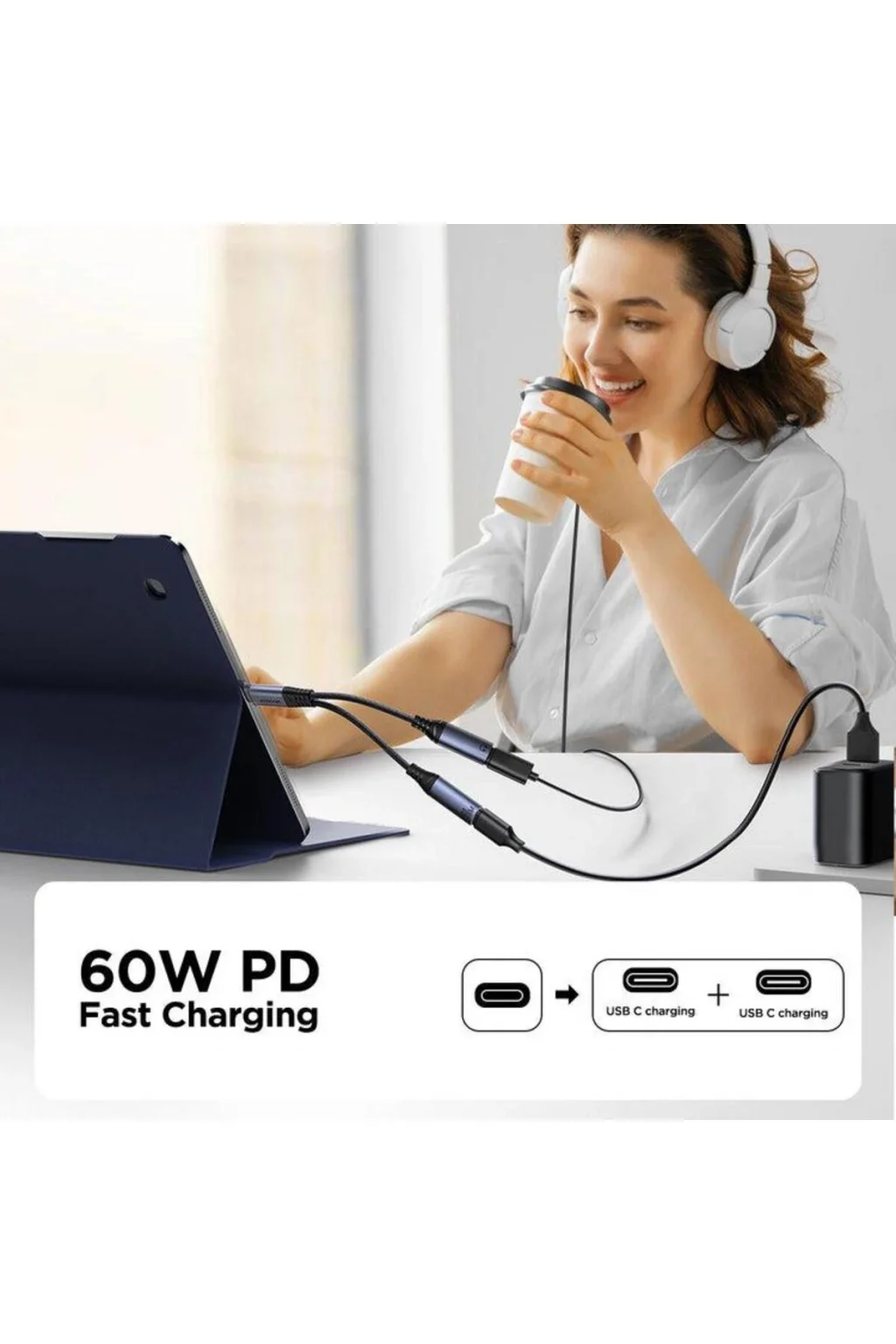Joyroom Audio Adaptör 2in1 (Type-C to Dual Type-C)-Siyah