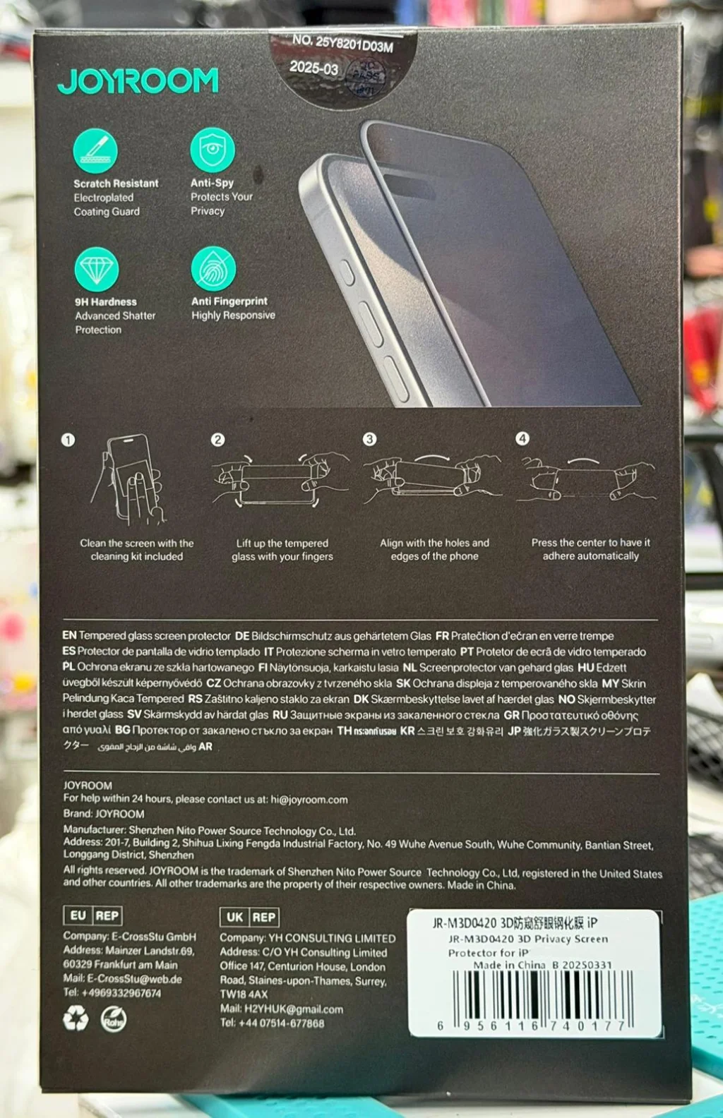 Joyroom Gorilla Glass Hayalet Ekran Koruyucu, iPhone 15 Pro kullanıcıları için üst düzey koruma sağlar. Corning Gorilla Glass malzemesi sayesinde ekranınızı çiziklerden, darbelerden ve parmak izlerinden korur. Premium kalitede üretilmiş olan bu ekran koruyucu, parmak izi bırakmaz ve ekranınızın temiz görünmesini sağlar. 3D hayalet teknolojisi sayesinde ekranınızın yanından bakıldığında görünmez, böylece gizliliğinizi korur. Ayrıca özel tasarımı sayesinde iPhone 15 Pro'nuzla mükemmel uyum sağlar. Joyroom Gorilla Glass Hayalet Ekran Koruyucu ile ekranınızı güvenle koruyabilir, yüksek koruma seviyesinden faydalanabilirsiniz.