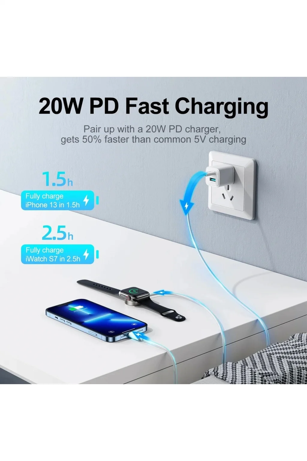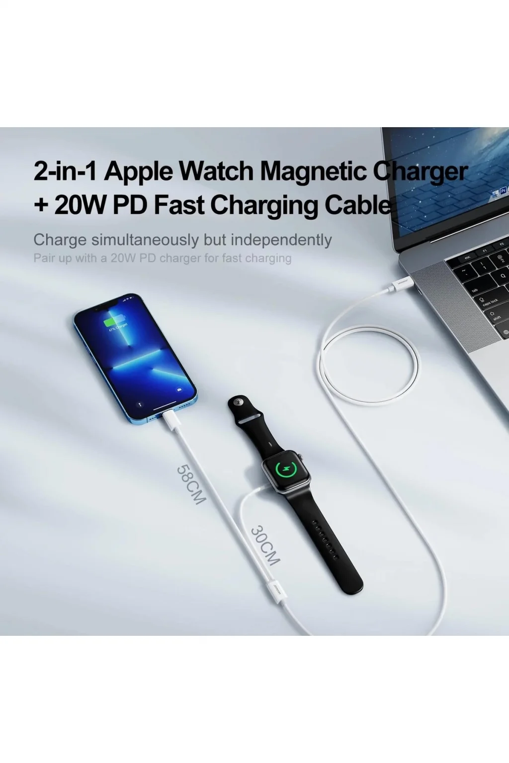 Ürün adı: Apple Watch'a 2'si 1 arada Tip-C Manyetik Şarj +20W PD Hızlı şarj Kablo