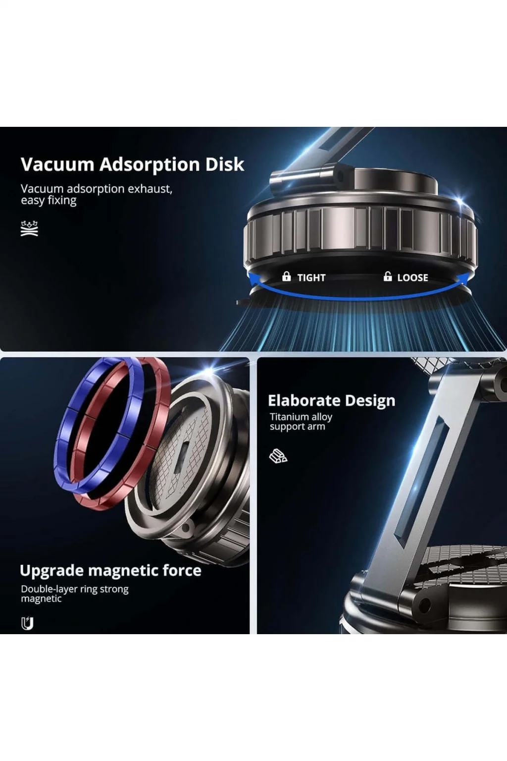 Hem emme vantuzu hem de manyetik tutucu özelliği ile telefonunuza güvenli bir şekilde yerleştirme imkanı sunar.