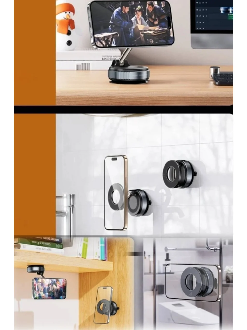 - Vantuzlu yapısı sayesinde aynanızda veya cam yüzeyde sabit kalırken, istediğiniz açıda konumlandırılabilir.