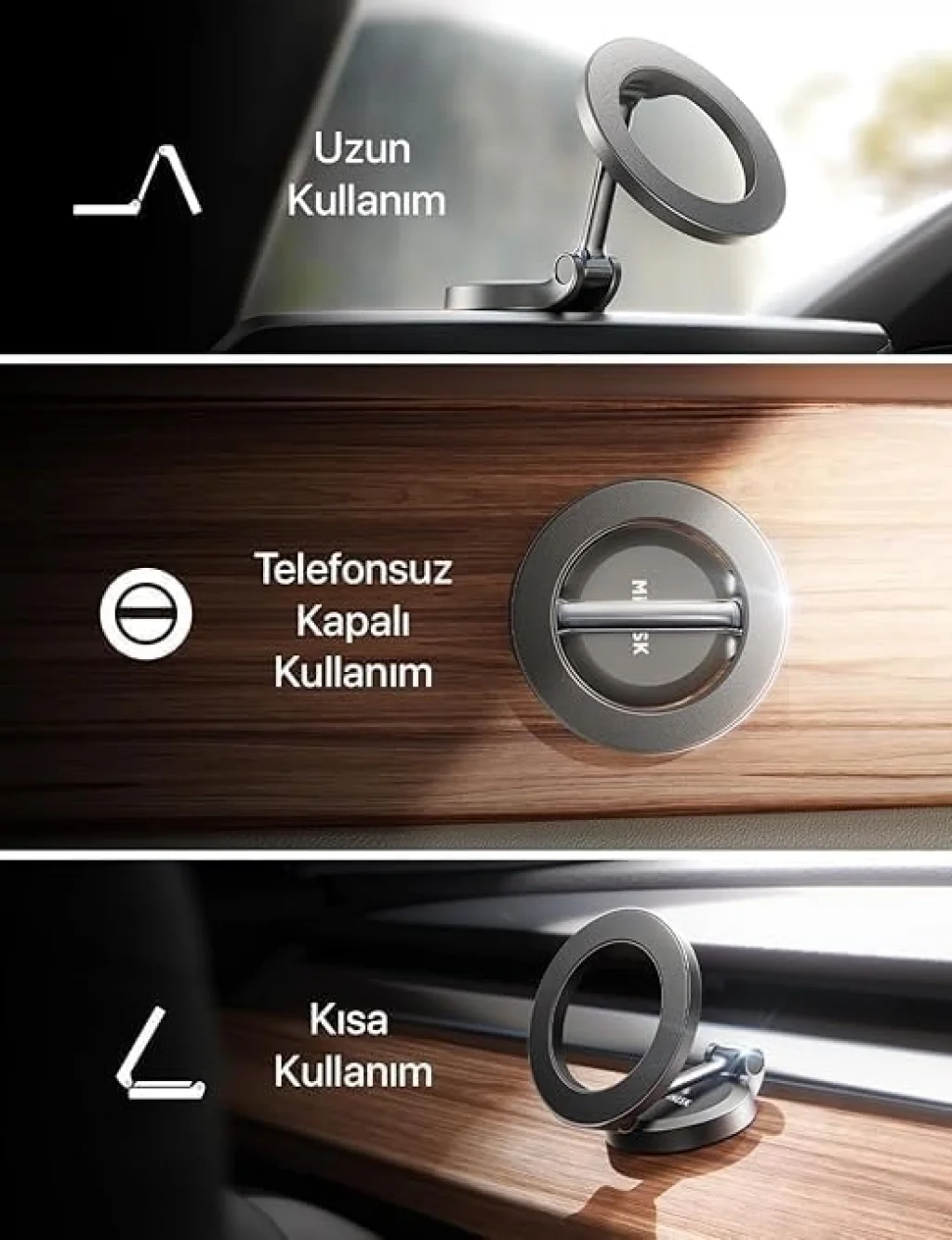 Kutu içerisindeki metal aparatlar sayesinde tüm cep telefonları, tablet ve navigasyon cihazlarıyla uyumludur.